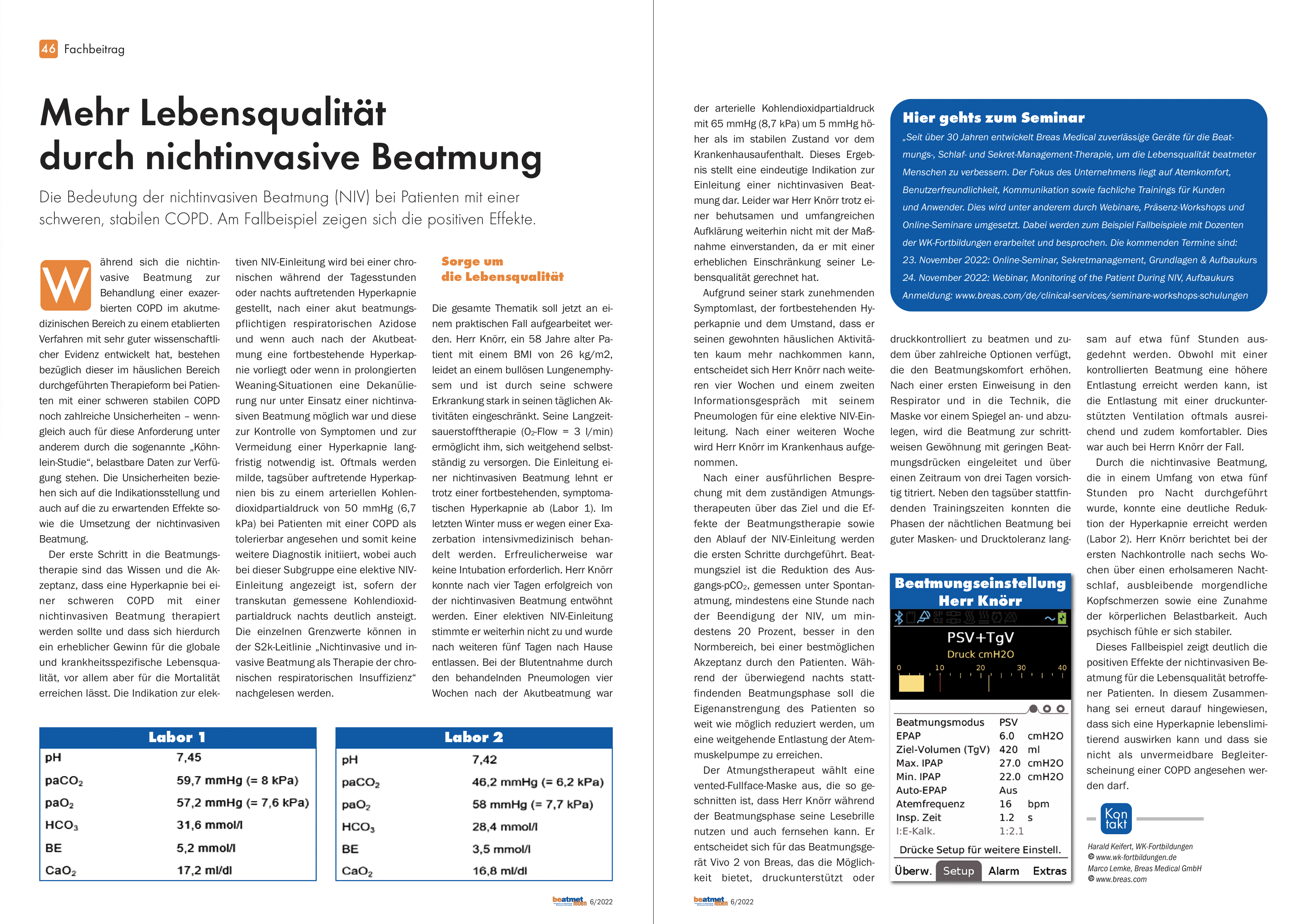 Die Bedeutung der nichtinvasiven Beatmung (NIV) bei Patienten mit einer schweren, stabilen COPD. Am Fallbeispiel zeigen sich die positiven Effekte.