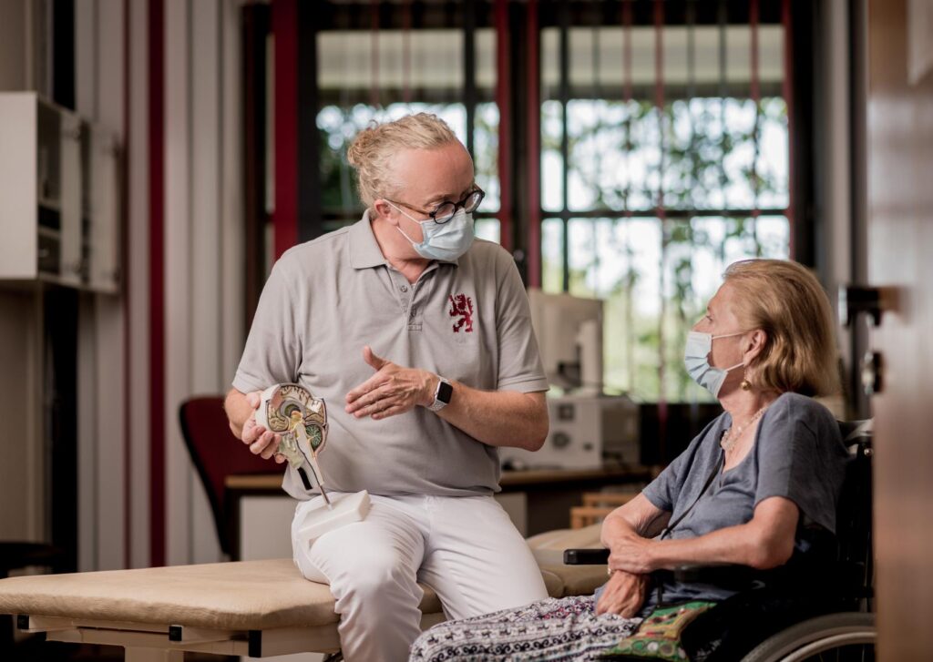Inzwischen weiß man, dass Long- beziehungsweise Post-Covid-Betroffene noch lange nach einer überstandenen Covid-19-Erkrankung an Langzeitfolgen leiden. Die Symptome sind vielfältig und ziehen zum Teil massive Einschränkungen im Alltag nach sich. „Neben Schädigungen, die die Lungenfunktion oder das Herz-Kreislaufsystem betreffen, beobachten wir deutlich leistungsein- schränkende neurologische Defizite bei Menschen, die eine SARS-CoV-2-Infektion überstanden haben“, erklärt Dr. med. Oliver Meier, Ärztlicher Direktor und Chefarzt der Neurologie und Geriatrie im Passauer Wolf Bad Griesbach, der zudem erwähnt, dass insbesondere das Erschöpfungssyndrom (Fatigue-Syndrom), als auch mittelschwere bis schwere Gedächtnisstörungen als Folgeschäden vor allem bei jüngeren Patienten auftreten, die ihre gewohnte Leistungsfähigkeit im Beruf und im Alltag nicht mehr eigenständig erreichen können. Das Ziel bei der Post-Covid-Reha im Passauer Wolf Bad Griesbach ist es, die Patienten effektiv auf ihrem Genesungsweg zu begleiten. Dabei sollen nicht nur die Symptome gelindert, sondern den Betroffenen auch dabei geholfen werden, Bewältigungsstrategien zu entwickeln, die die Selbstständigkeit im beruflichen und privaten Alltag sichern. Das Team greift auf ein breites Behandlungsspektrum zurück und erfüllt die Kategorien, die für die Vergabe des Siegels ausschlaggebend waren. Der Passauer Wolf punktet hierbei neben der Fachexpertise bei der Behandlung von Post-Covid-Symptomen mit interdisziplinären Konzepten. Ein Team aus Ärzten, Therapeuten und Pflegekräften arbeitet fachübergreifend zusammen. Die Diagnostik, ebenso wie die Behandlung, die sich an aktuellen ärztlichen Leitlinien orientiert, erfolgt von Experten mehrerer Fachrichtungen.