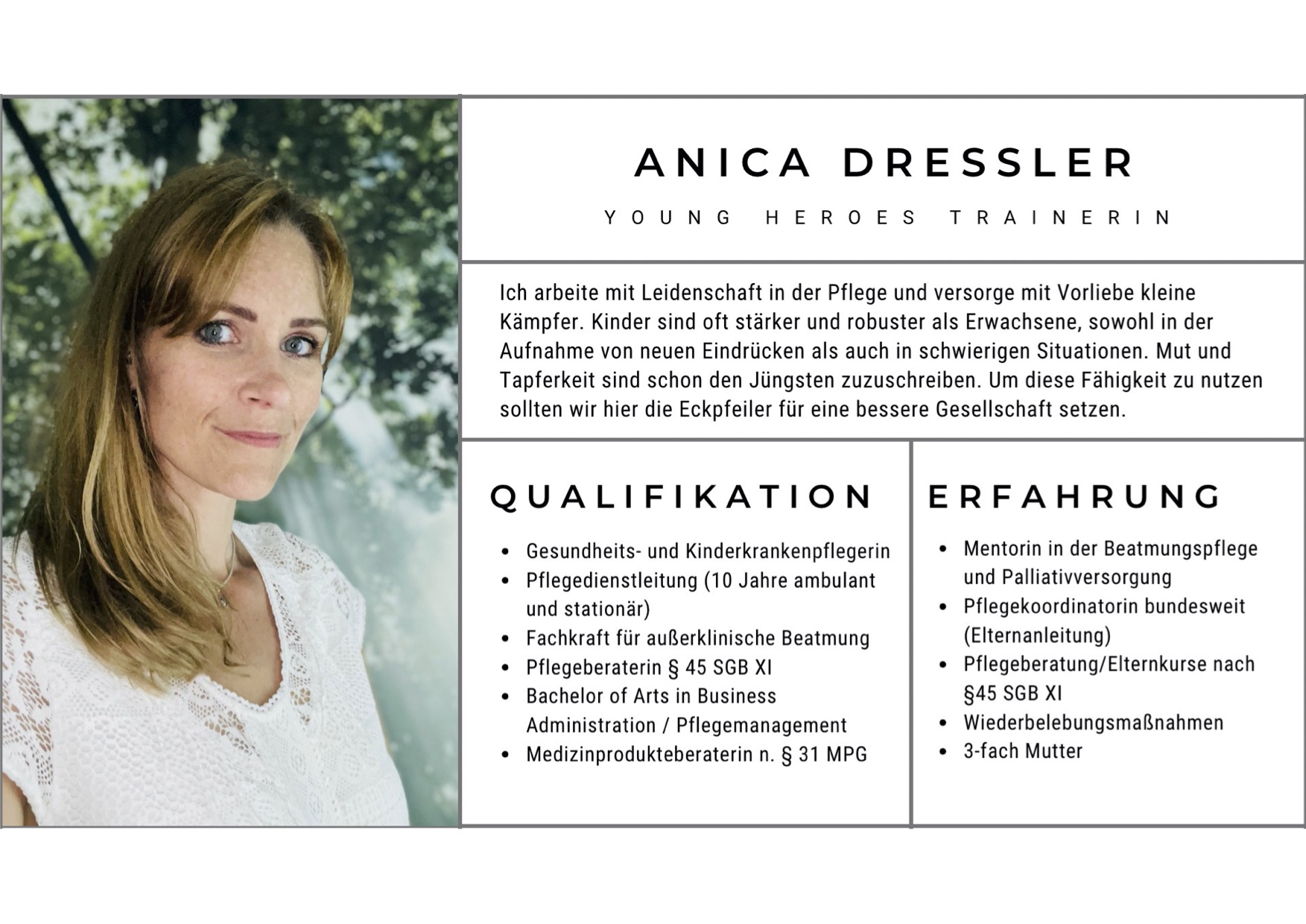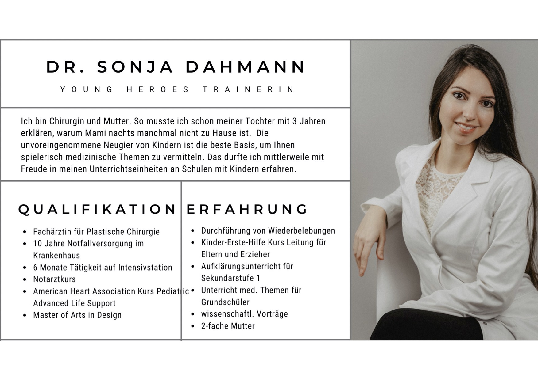 Dr. Sonja Dahmann, Fachärztin für Plastische Chirurgie, Designerin, Erste-Hilfe-Trainierin, Wissenschaftlerin und Anica Dreßler (B.A. in Wirtschaftlichspsychologie und Pflegemanagement), Casemanagerin für außerklinische Intensivpflege, Kinderkrankenschwester, Pflegedienstleitung, sind zwei Mütter, die Ihren Kindern gern ein Bewusstsein für lebensbedrohliche Notfälle und lebensrettende Fertigkeit vermitteln wollen.