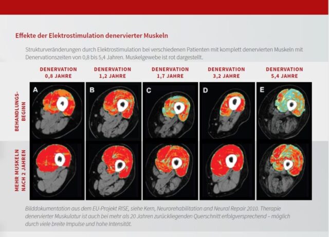 Muskelzuwachs durch FES ist auch bei 20 Jahre und länger zurückliegendem Querschnitt möglich. Es empfiehlt sich die Anwendung in Heimtherapie, um einen angenehmen und funktionell effizienten Gewebspolster zu erhalten.